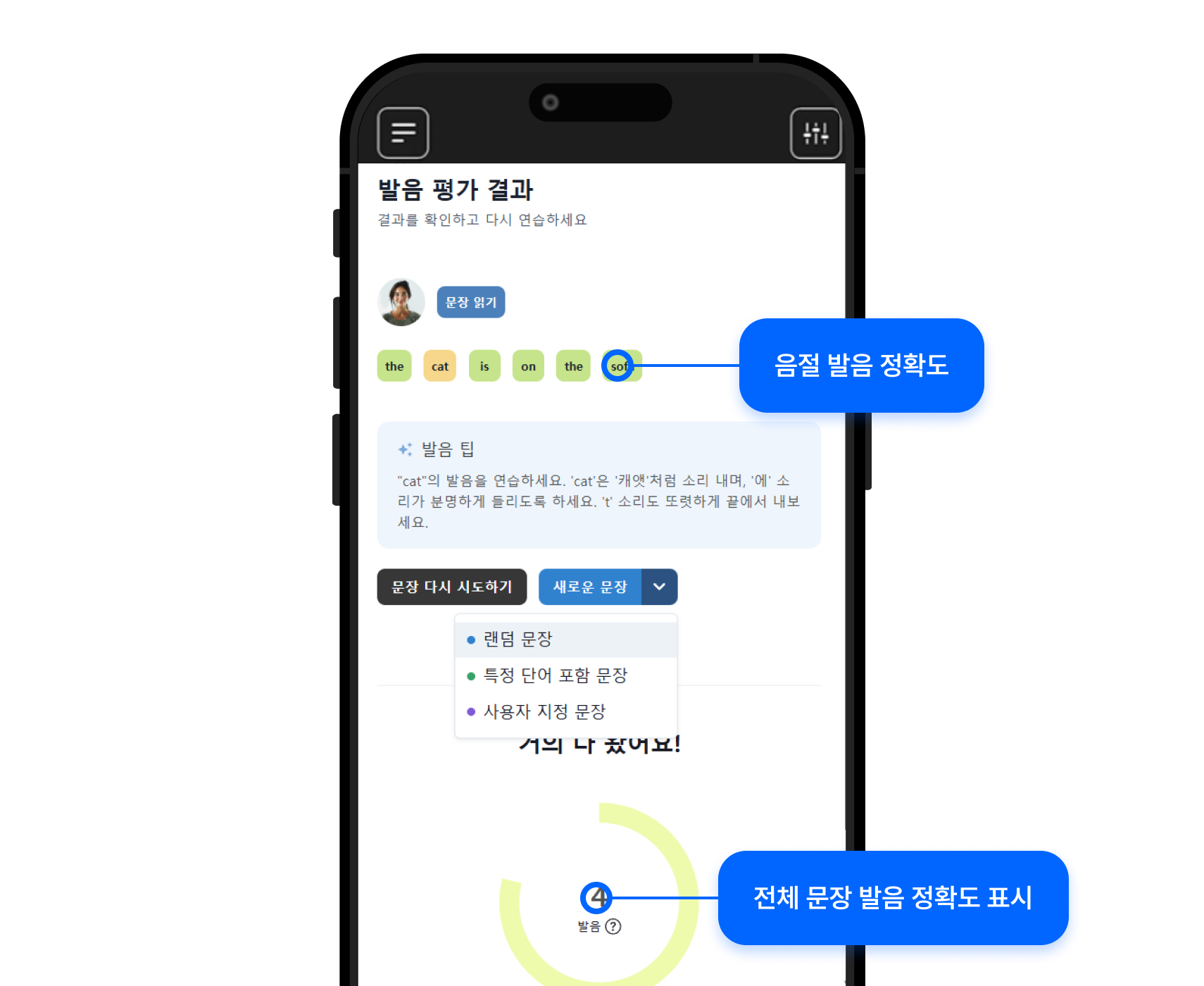 세부 발음 정확도 기능 제공 불가 / 평가서 미제공