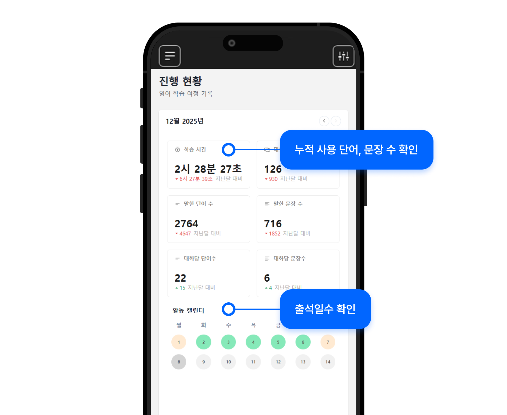 출장 전에 대화 감각을 키우기 위해 시작했는데, 매일 실시간 피드백으로 빠르게 적응 중입니다.